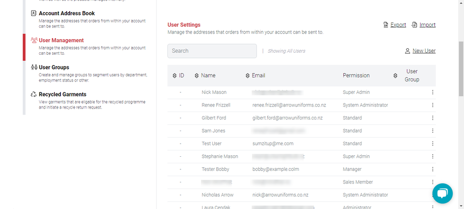 You will redirect to the Account Settings page, with sections on the sidebar. This includes General Settings, Wardrobe Management, Account Address Book, User Management, User Groups and Recycled Garments.