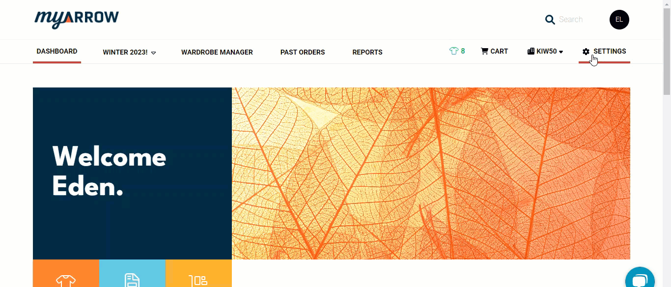 On your dashboard, move your cursor to the upper right portion of the screen and click Settings.