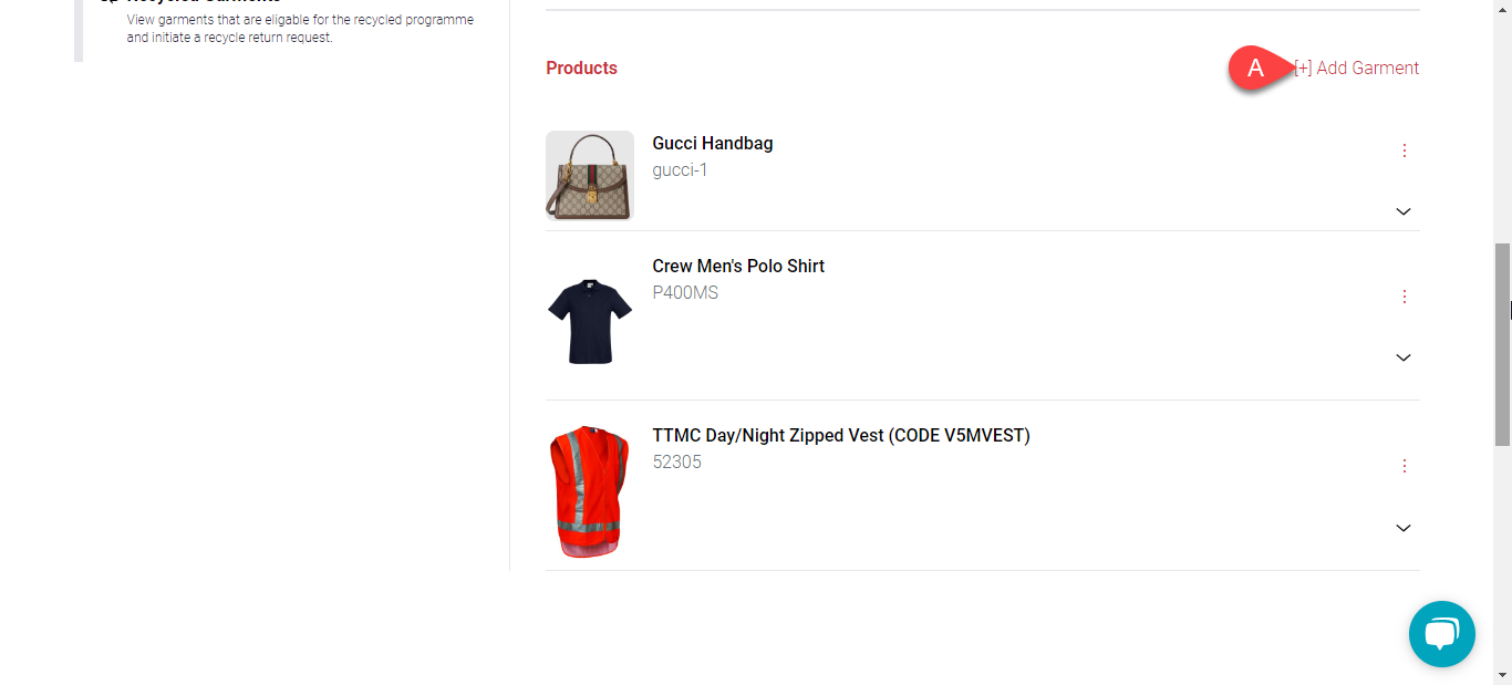 In the Product section below disposal policies, you can add garments or products that are part of your company/school’s uniform or even those not in the myArrow collection. Click (a) the “Add Garment” button highlighted in red text.