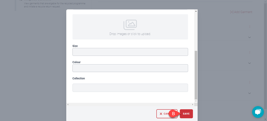 You can also drag and drop the product’s image, type in the size and colour and indicate the collection it’s from. When done with the details, (b) click on the Save button.