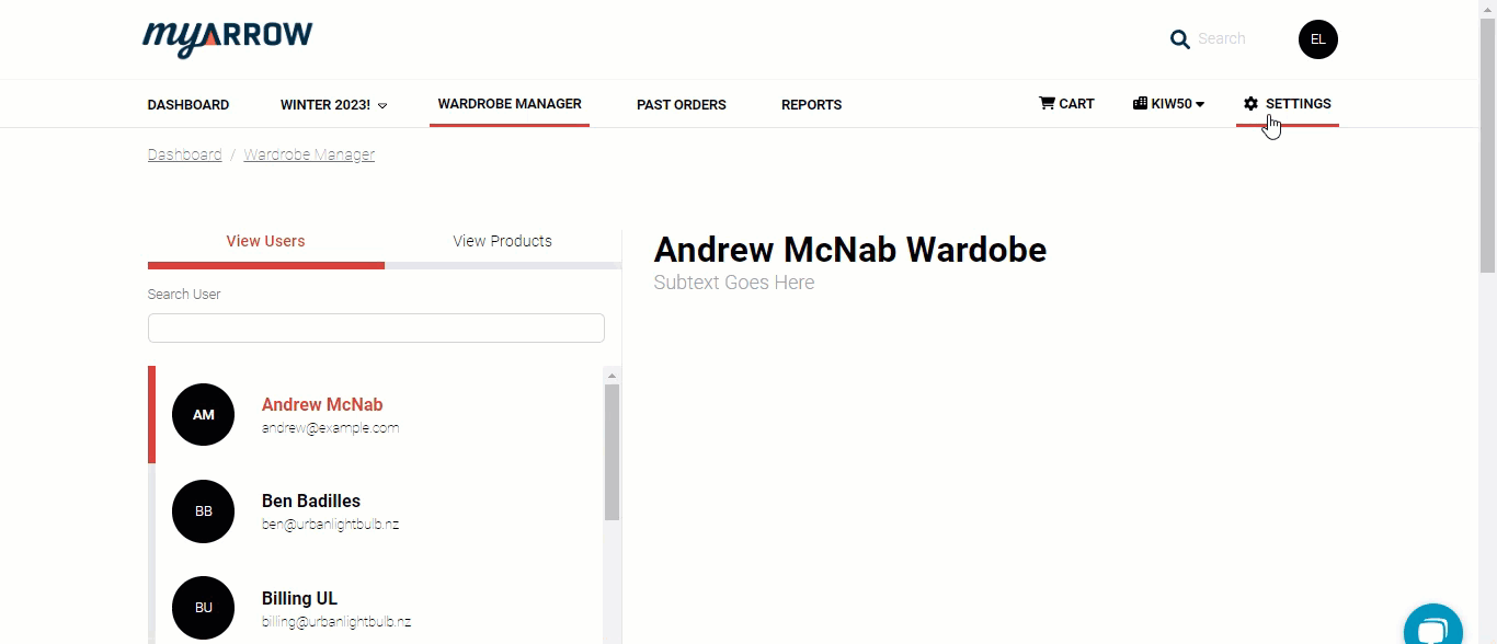 To do this, click on the Settings icon on the main navigation bar to navigate to the Account Settings page. Look for the Recycled Garments Tab and click.