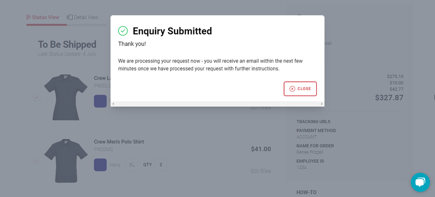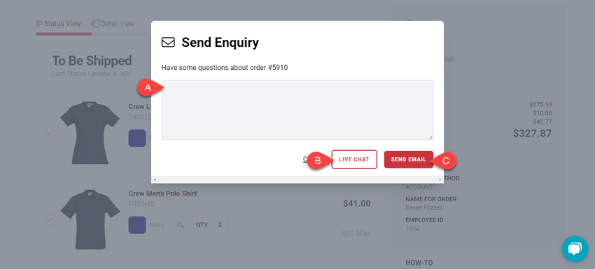 When choosing Live Chat, a chatbox will appear, and you can ask a support agent regarding the product.