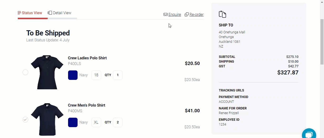 Once you have the product of interest, click the (c) "View" button on the right side of the product list. This will bring you to the Order View page.