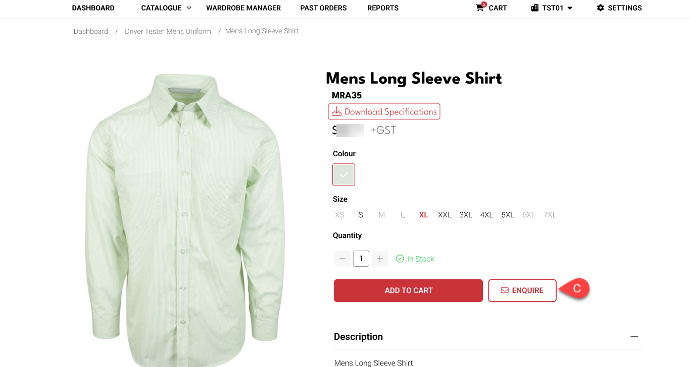 Once you're on the specific product page, you can (c) click the "Enquire" button beside the Add to Cart button.