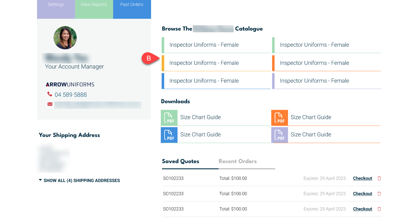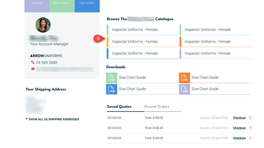Alternatively, you can (b) view your catalogue via your company's custom dashboard. This will also show you the general list of products or items in your company's catalogue.